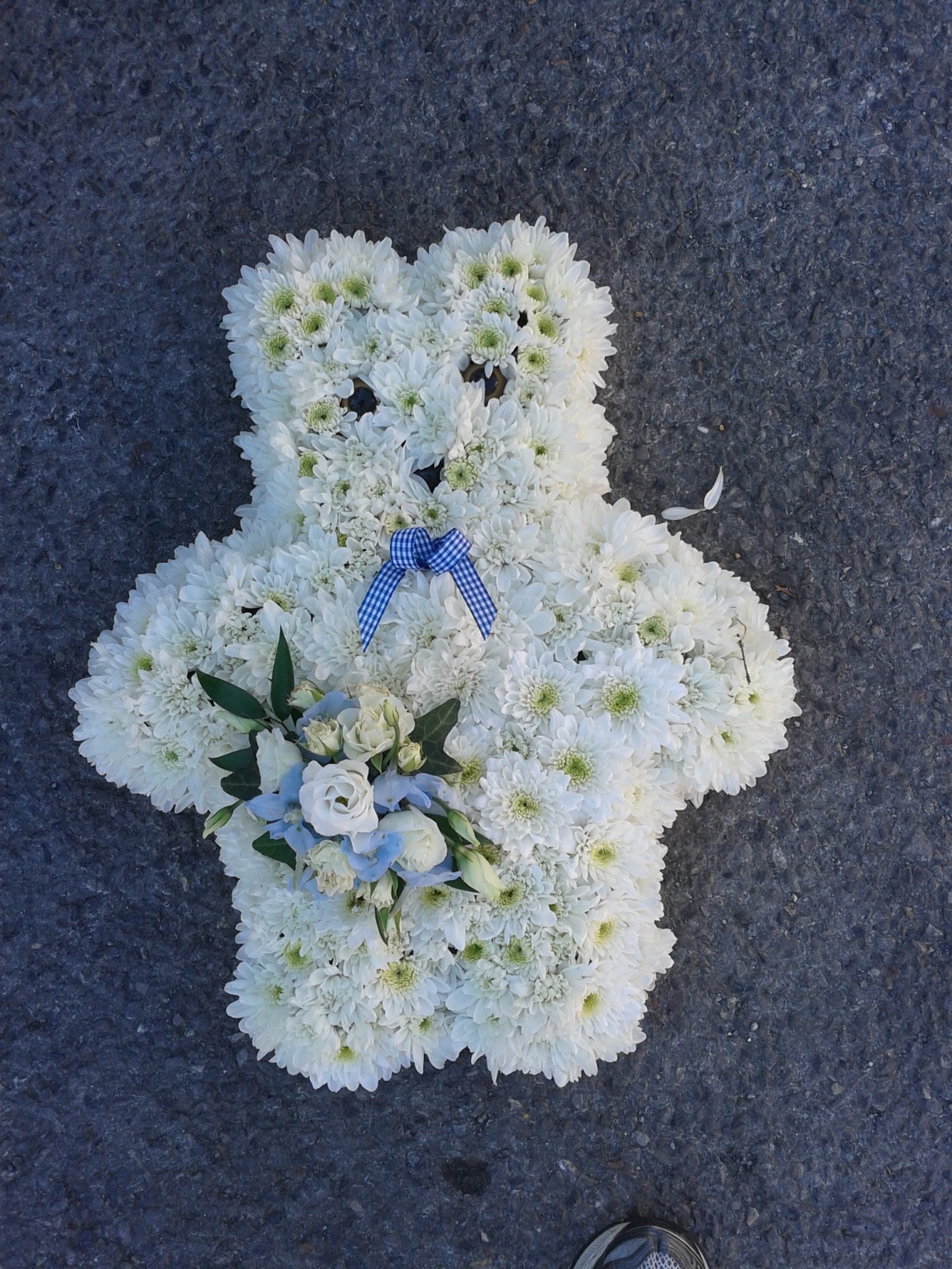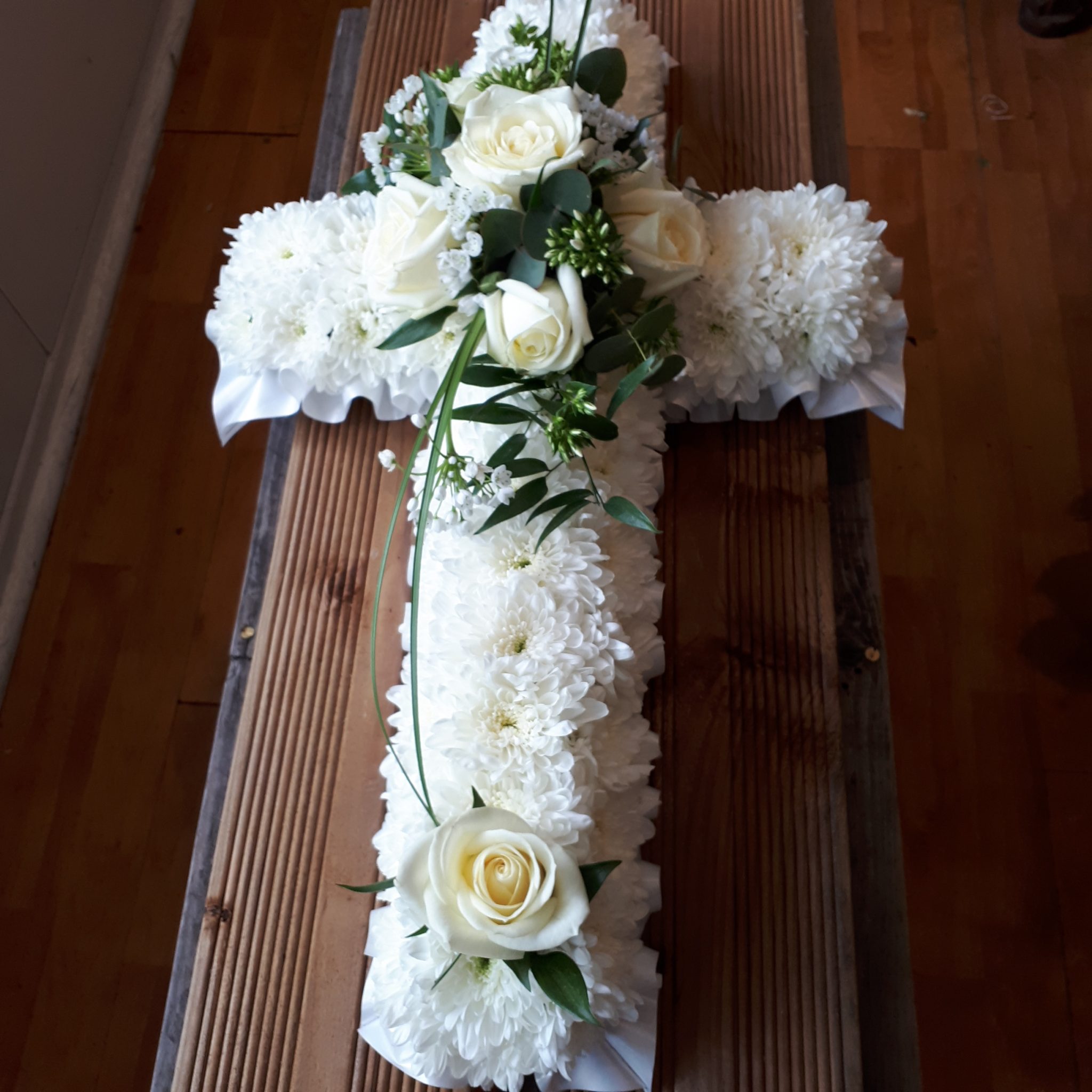 - White based cross with white flower spray £130