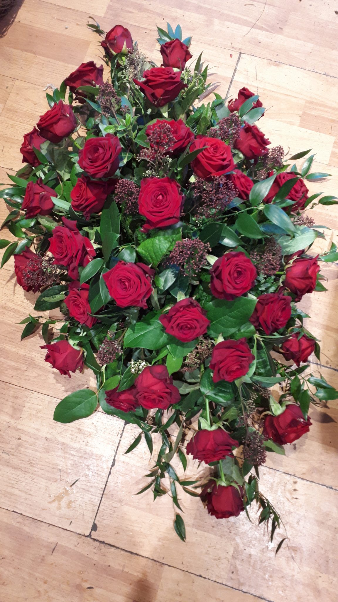 - 3ft Rose and skimmia Spray £180