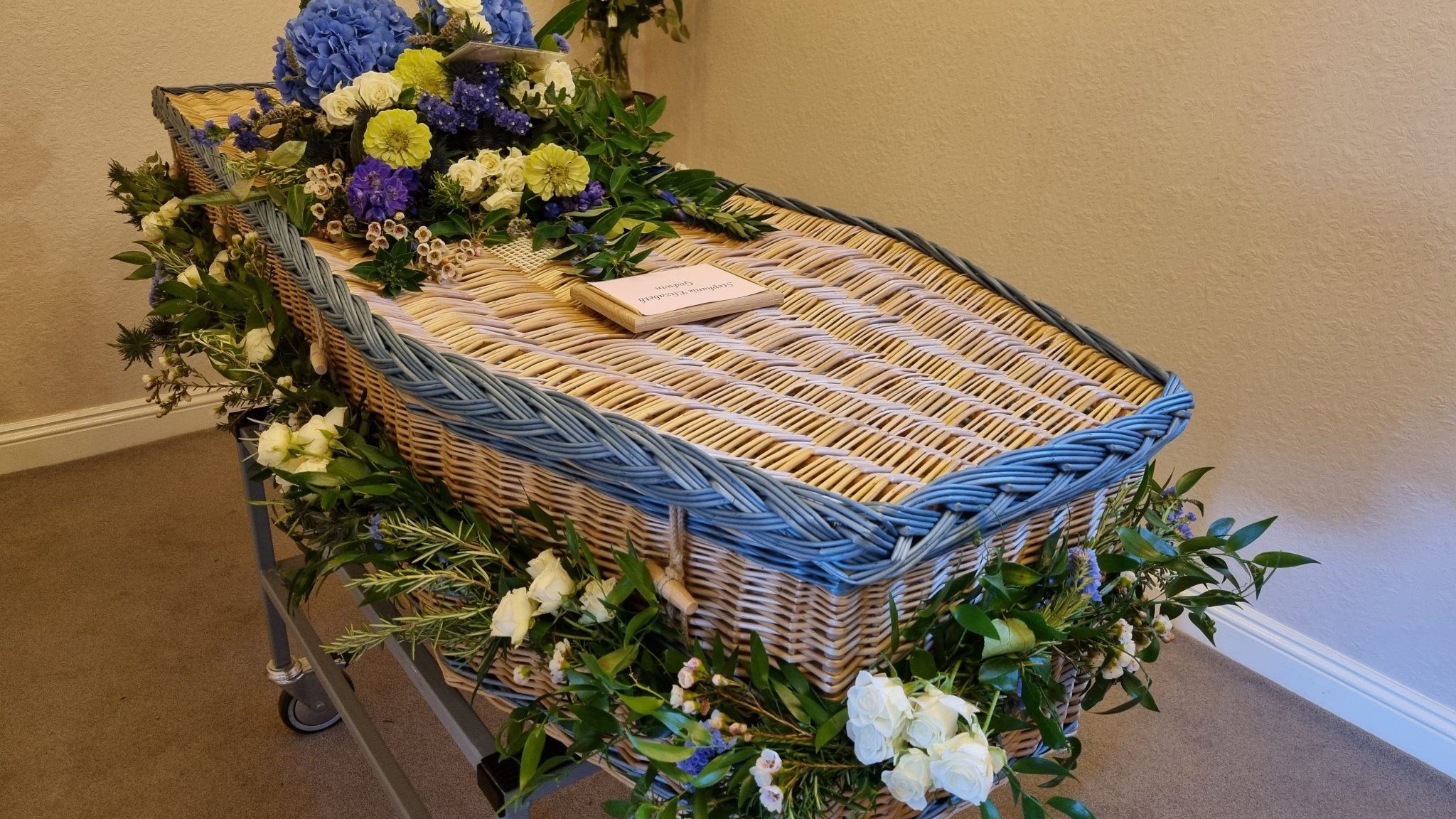 - Blue hand tied sheaf and garland £250